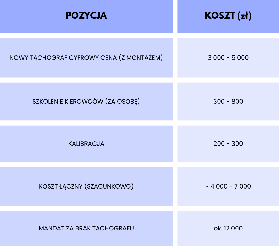Porównanie kosztów: nowy tachograf vs. mandat