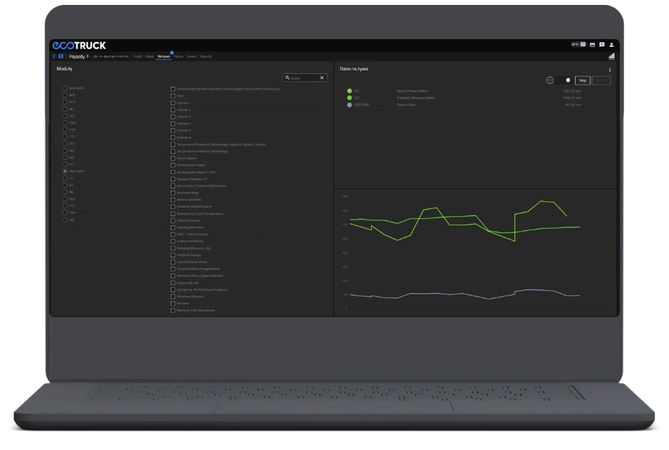 Nie, system ecoTRUCK został zaprojektowany z myślą o intuicyjnej obsłudze przez właścicieli flot, spedytorów oraz kierowców – bez konieczności posiadania wiedzy mechanicznej. Platforma wyświetla błędy w przystępny sposób, z opisami w języku polskim oraz sugestiami działań.