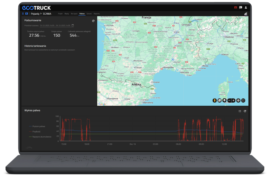System zdalnej diagnostyki ecoTRUCK umożliwia:
